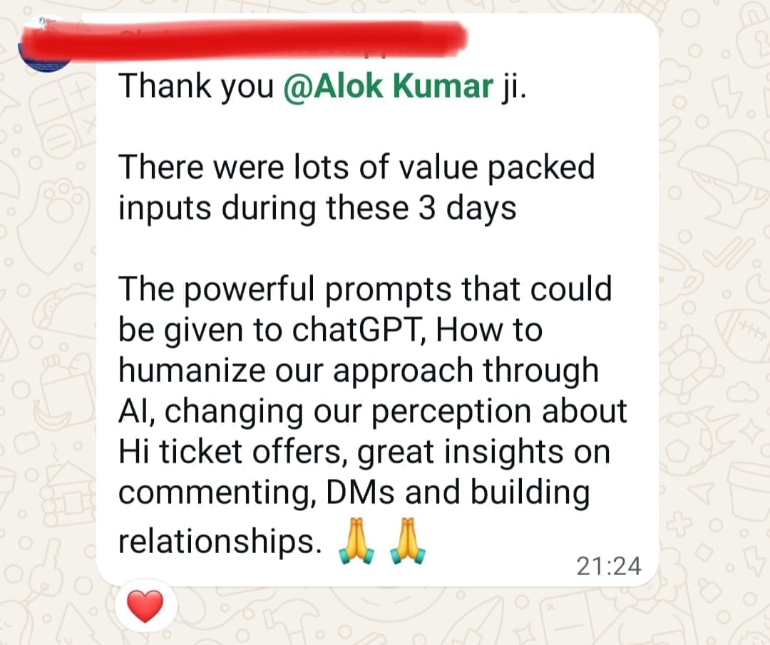 I tried many coaches before, but nothing worked. Then I joined Alok Sir, followed his simple system, and landed 3 clients last week, and 2 more are in the pipeline